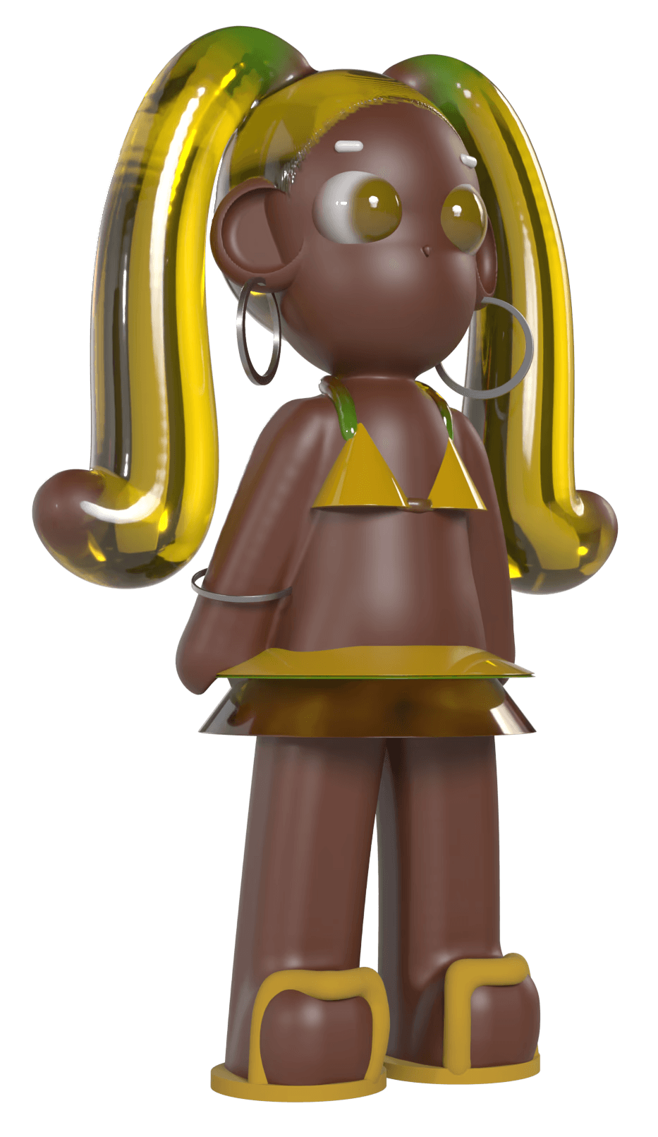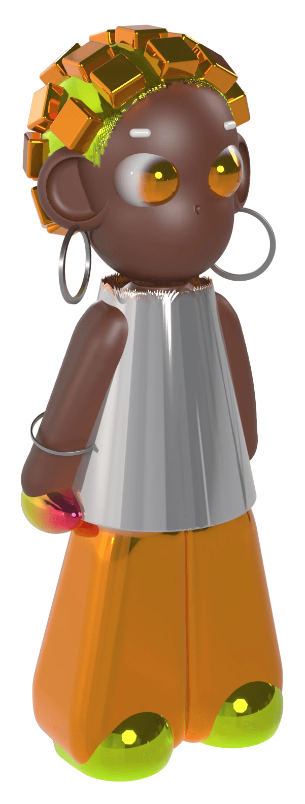 Makay (Tamil for mango tree and unripe fruit) is a true hiphop fan from her bantu knots to her baggy jeans. As the secret crush, she carries a mango and has a reflective coloring.