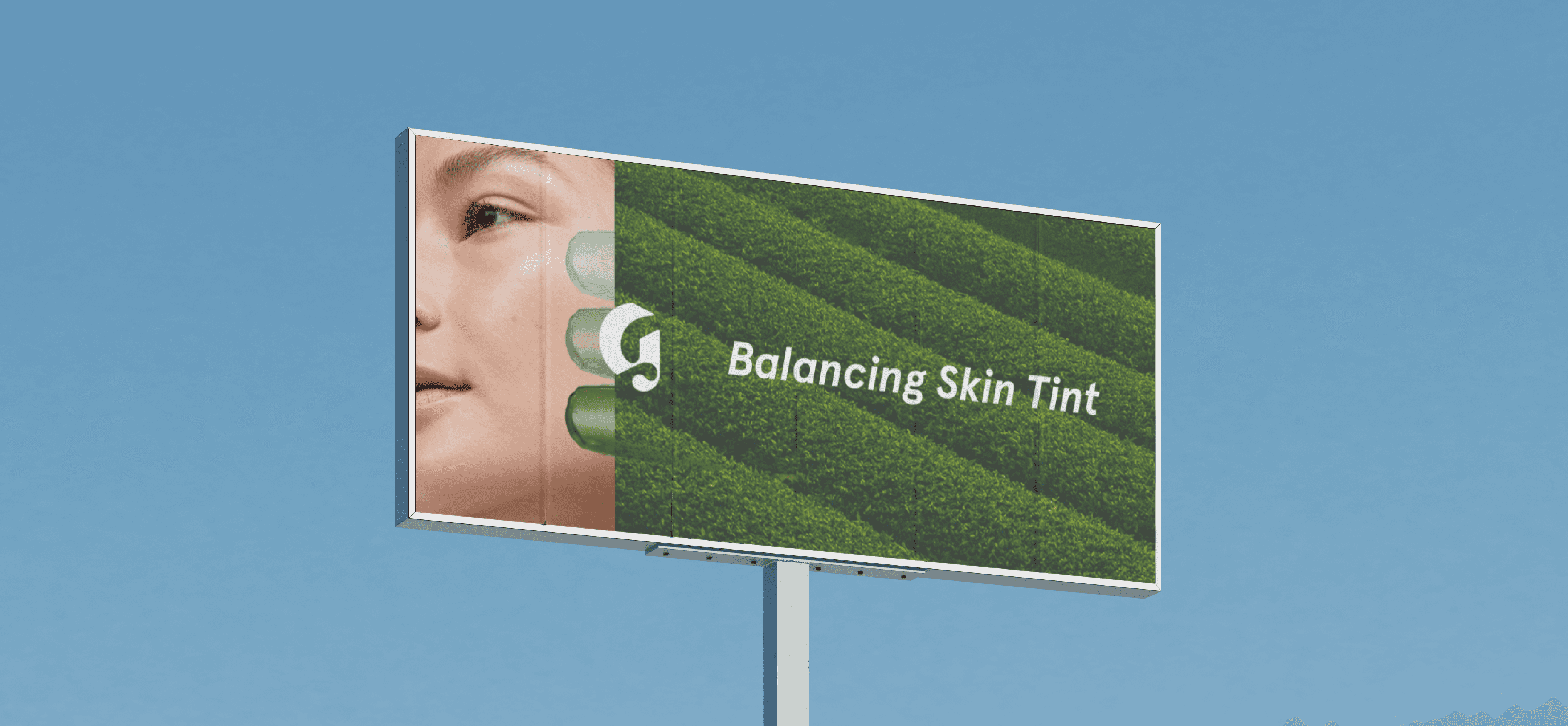 So, I needed to create something easy to read, with instant brand recognition and a clear display of the new product. A green tea farm next to the three shades portrayed the calmness of the line, while the copy was clear enough to both showcase the product and leave room to funnel people to Glossier's site or socials.